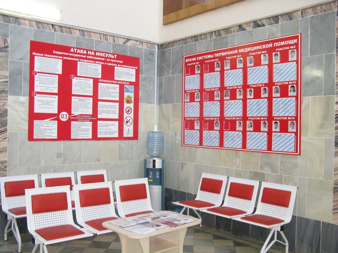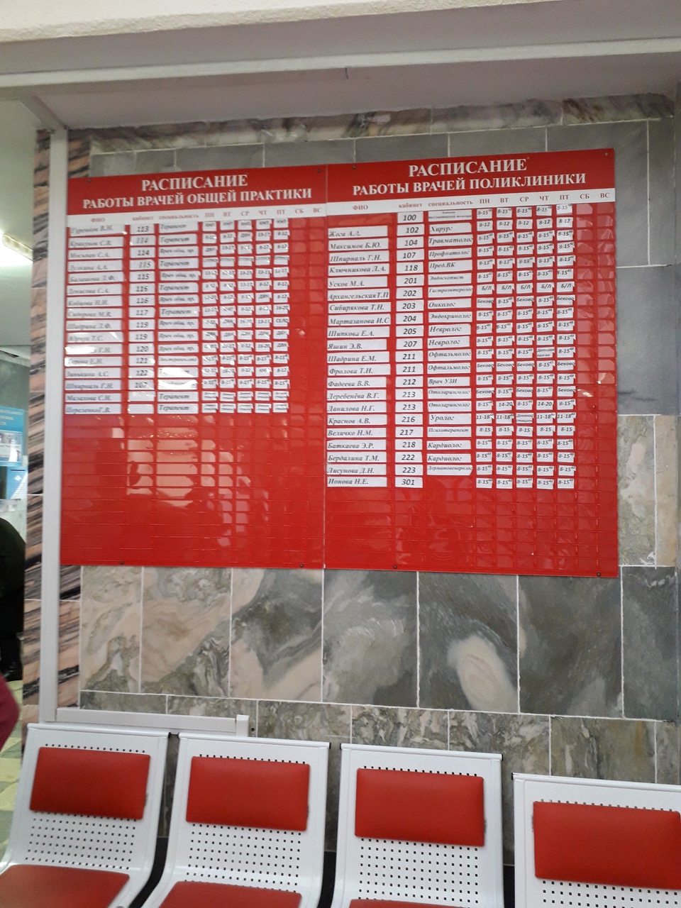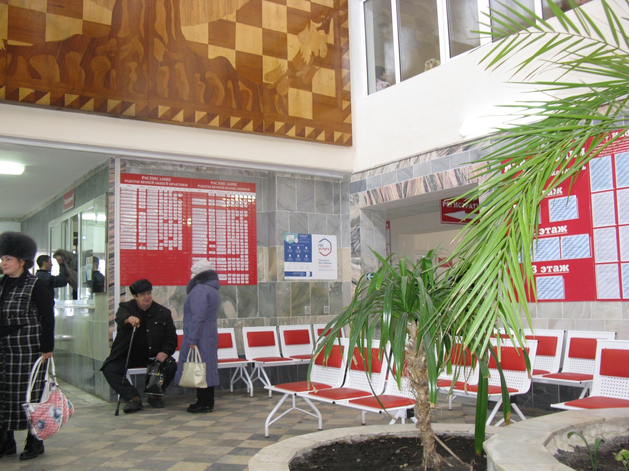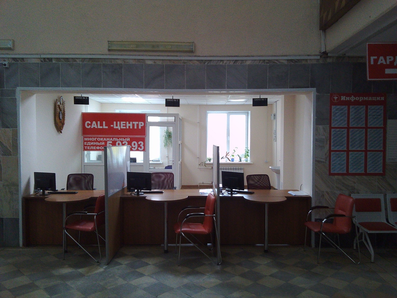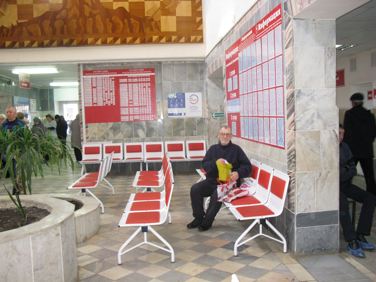 - установлен инфомат для регулирования очереди в регистратуру, табло со звуковым сопровождением для слабовидящих, бегущая строка с информацией.