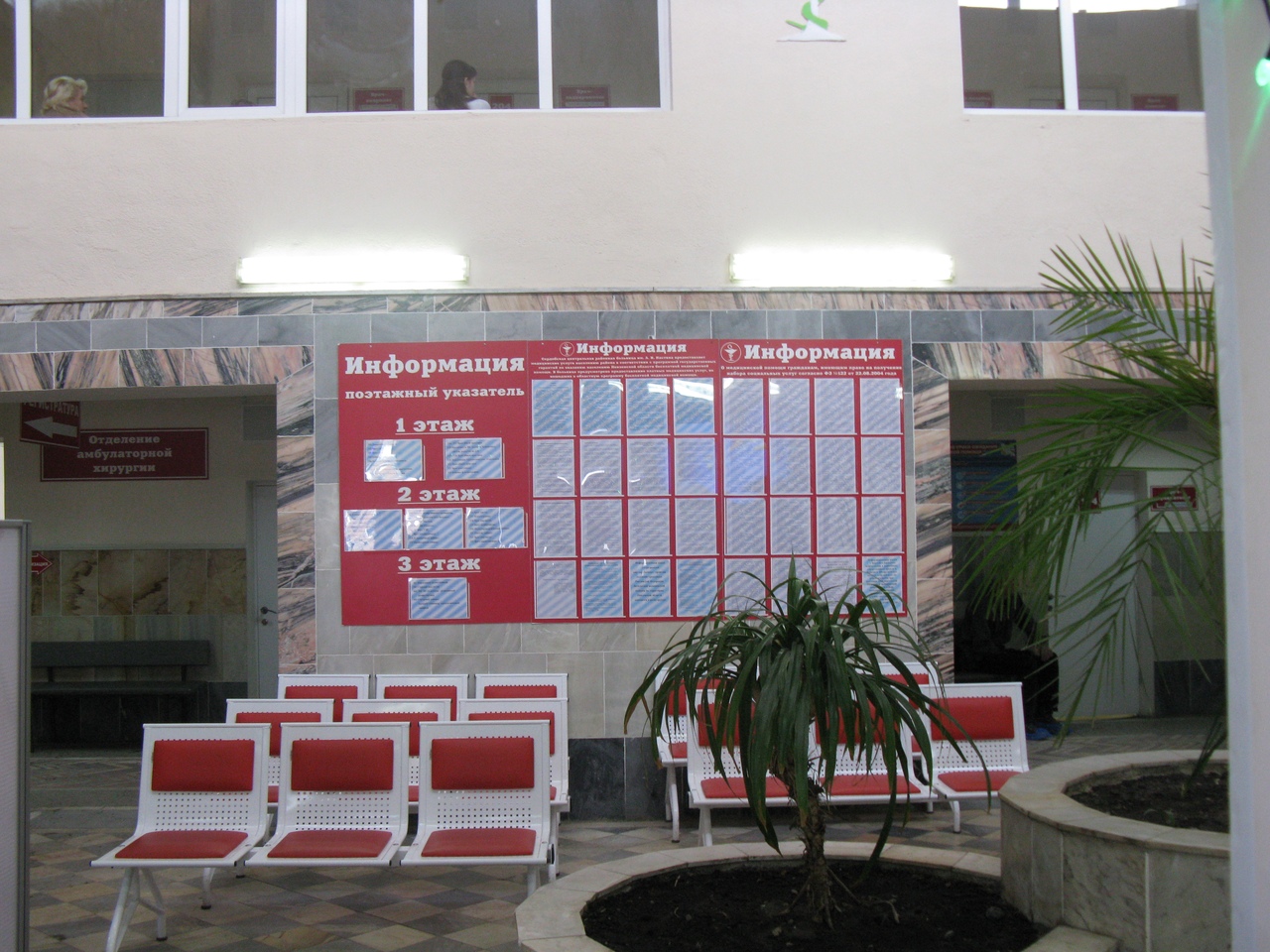 Организована приемно-информационная зона, которая помогает посетителям свободно ориентироваться на территории поликлиники: